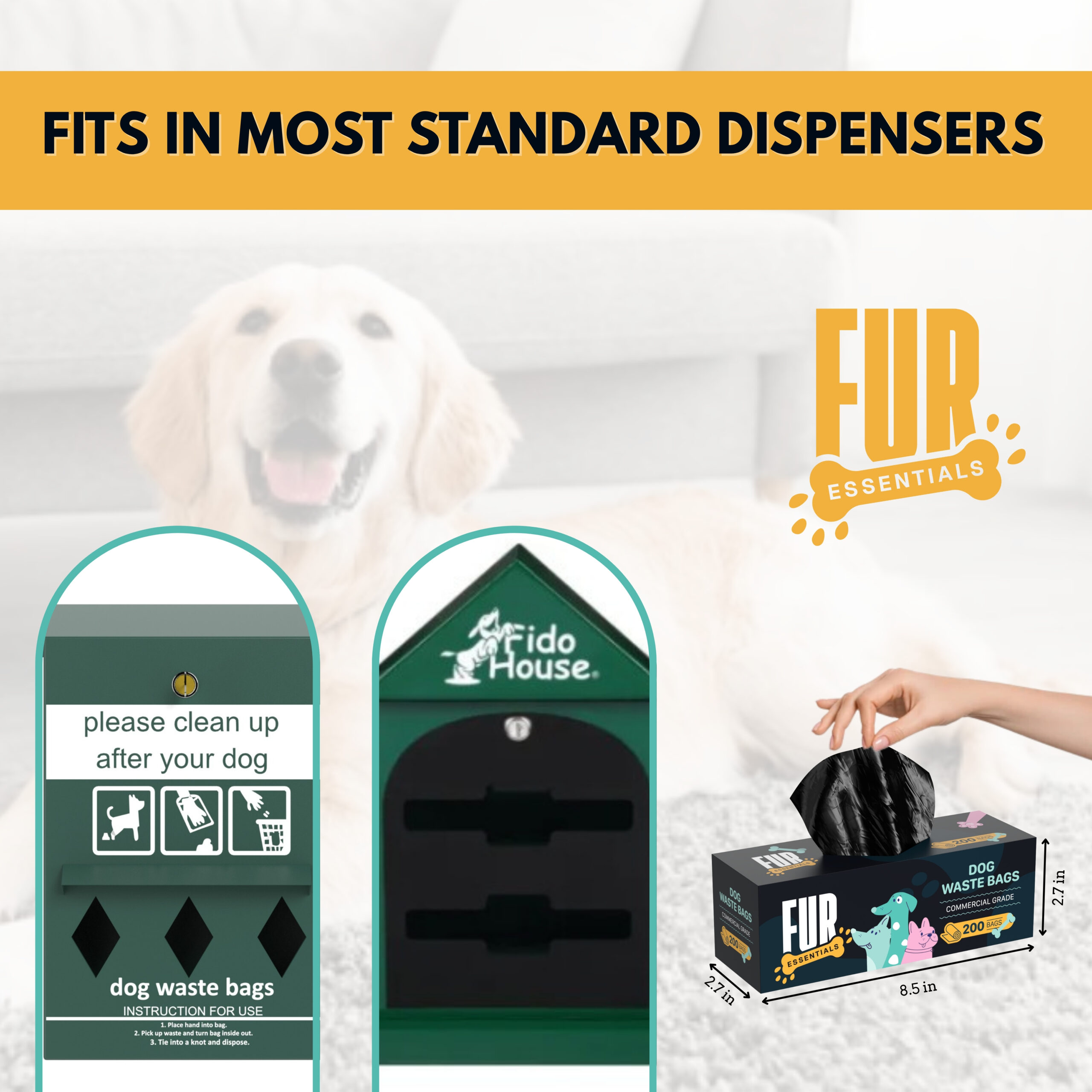 Keep shared pet areas clean, welcoming, and professional with Fur Essentials Commercial Grade Dog Waste Station Refill Bags. Each roll includes 200 strong, leak-resistant bags sized 8″ x 13″ — large enough to handle waste easily while maintaining a clean pickup experience. Designed with efficient maintenance in mind, each roll comes in a compact box measuring 8.5″ W x 2.7″ D x 2.7″ H, which is the standard size required to fit seamlessly into most commercial roll-style waste station dispensers. Perfect for parks, HOA communities, multifamily housing, dog daycares, and municipal pet areas. These bags are unscented, BPA-free, and pet-safe, offering a hygienic cleanup solution that’s gentle on the environment.