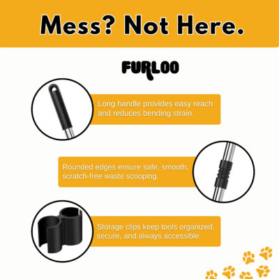 Keep your outdoor spaces clean and comfortable with the Furloo Pet Poop Scooper Set. This heavy-duty dog waste removal system includes a durable 38″ long handle rake, tray, and spade designed to allow you to clean up after your pet without bending or straining your back. Built with rust-resistant metal and a reinforced stainless steel handle, this set stands up to daily use in any weather. Designed to work on all surfaces, including grass, dirt, gravel, sidewalks, and cement, it provides efficient waste pickup no matter where your dog goes. The quick-connect assembly requires no tools, and the three pieces conveniently snap together for space-saving storage. When cleanup is done, simply rinse with a hose and it’s ready for next time. Ideal for small, medium, and large dogs, this scoop set is a must-have for backyards, dog runs, kennels, and parks.