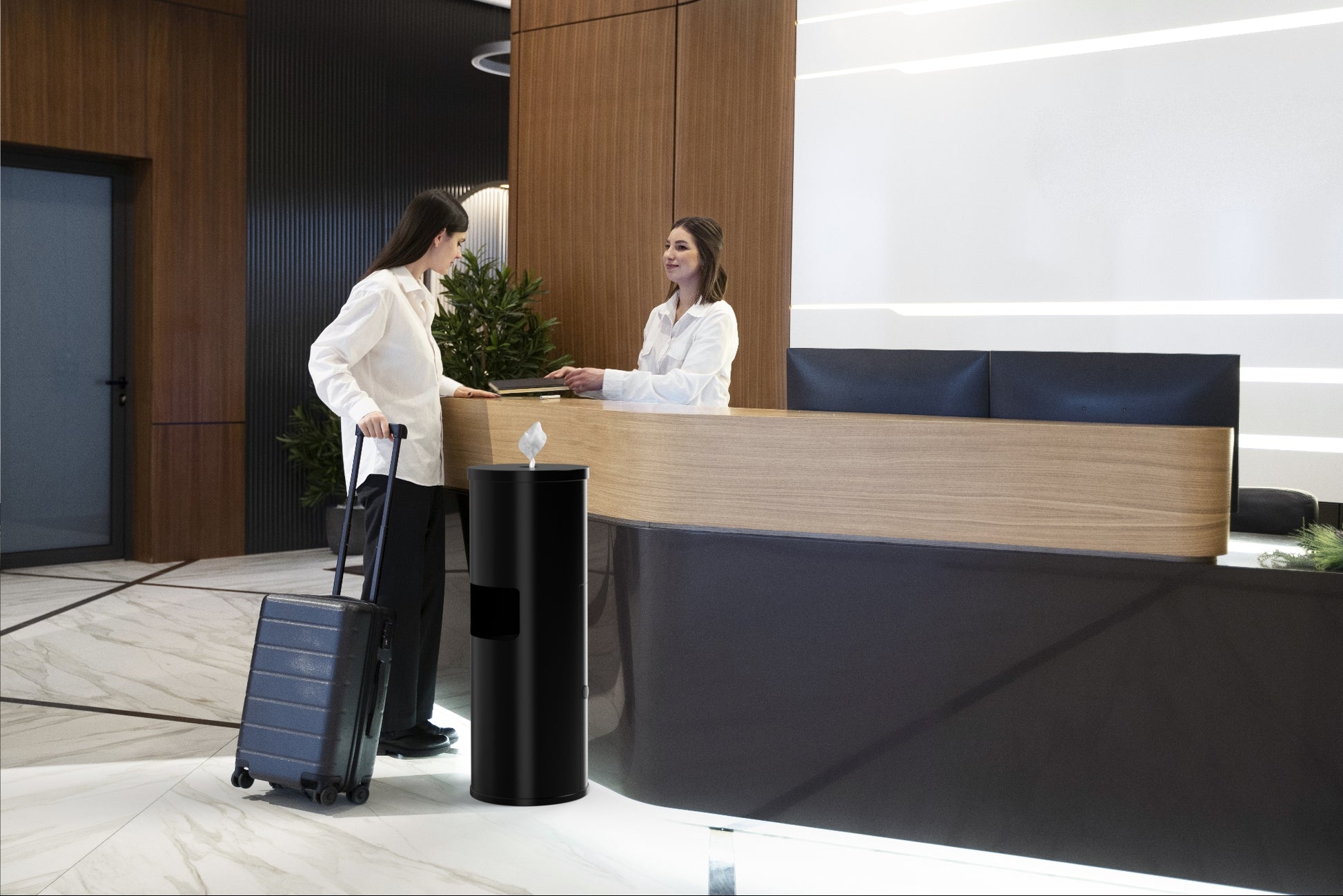 - Floor Stand Wipe Dispenser with Large Base for Added Stability
